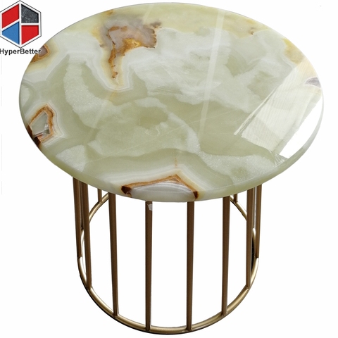 도매 골든 메탈 베이스 그린 오닉스 사이드 테이블